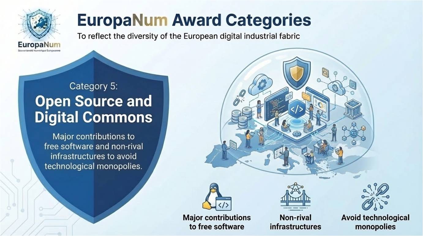 Recognizing that sovereignty often stems from pooling resources, this category honors major contributions to free and open-source software. It targets open-source projects critical to public administration or industry, promoting transparency and preventing technological monopolies.