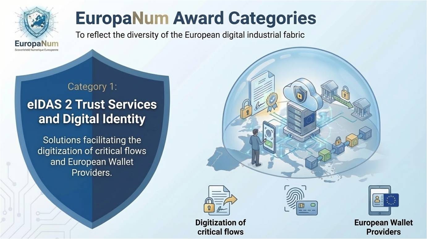 This category recognizes solutions that facilitate the delivery of trust services with a national and/or European scope. It encompasses qualified trust service providers (QTSPs) offering electronic signatures, seals, time-stamping, electronic archiving, and other eIDAS2 trust services.